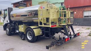 Construido en chapa de acero SAE 1010 soldado eléctricamente con doble costura interior y exterior. Capacidad de asfalto de 6000 Litros. Aislado térmicamente, encamisada en acero inoxidable con boca de inspección y carga superior tipo paso hombre. Indicador de nivel tipo flotante y regla graduada en la parte superior del tanque. Pasarela superior antideslizante con escalera lateral y plataforma de operación.